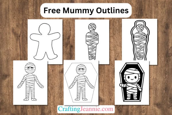Find the download link at the bottom of the post for the Mummy Outline PDF. And use it to make lots of fun Halloween Activities. Find Easy Paper Crafts and Craft Printables on CraftingJeannie.com!